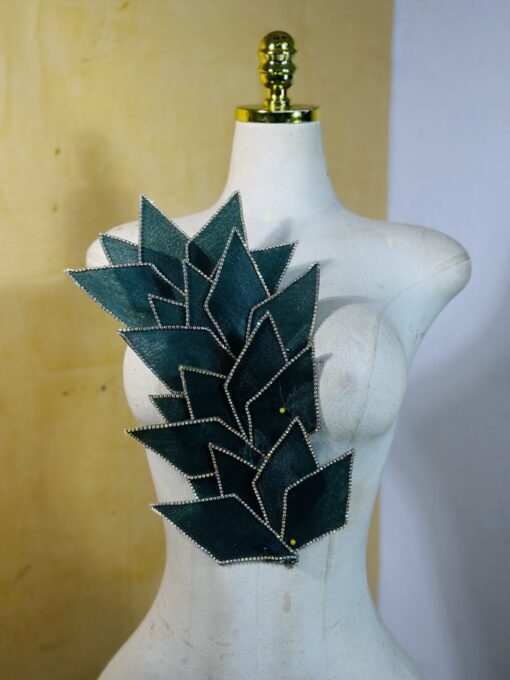 A well detailed 3D Applique with a silver contouring for bodice overlay or a dramatic shoulder piece also perfect for decorating evening gowns, bridal couture or statement Fashion pieces