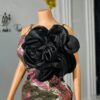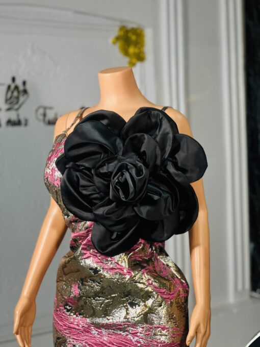 This beautiful above the knee brocade dress is your ticket to steal the show and captivate the eyes. With the beautiful and fluffy rose on the front. Can be customized to your size and preference.