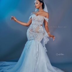 Ethereal Elegance: A luxury off-white floor length bridal dress. Make an unforgettable entrance in this breathtaking prom dress, customizable to your perfect fit .