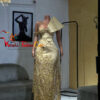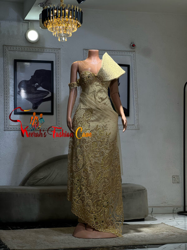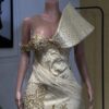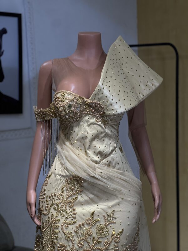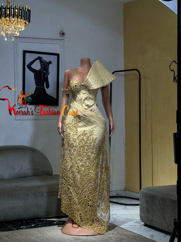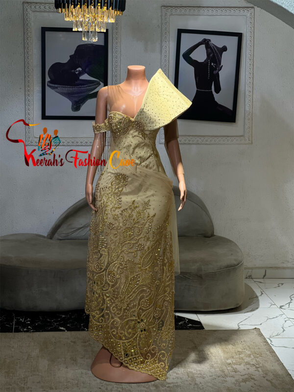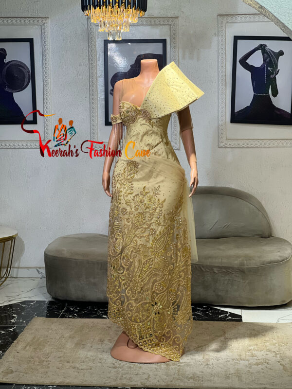 Lace party dress, elevates the whole party mood, cool color with dramatic cape.