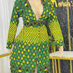 The bold, colorful print is inspired by traditional African designs, and the flowing, floor-sweeping silhouette is both elegant and comfortable. Whether you’re attending a special occasion or just want to add some flair to your everyday wardrobe, this dress is sure to turn heads.