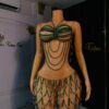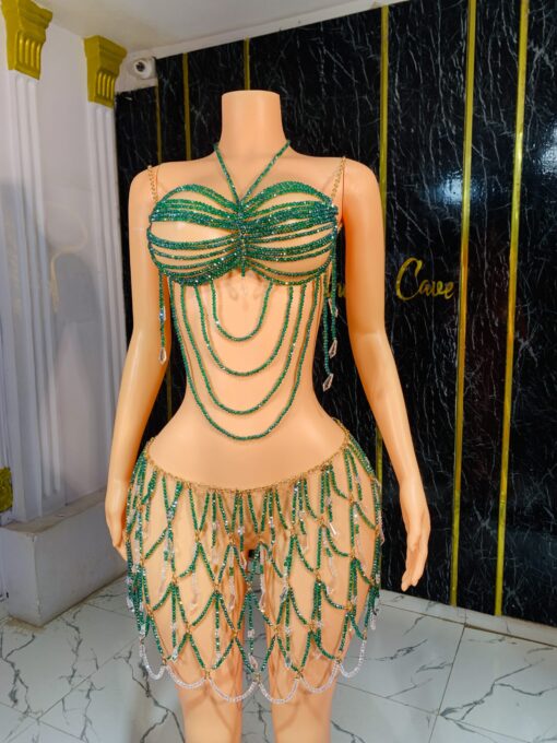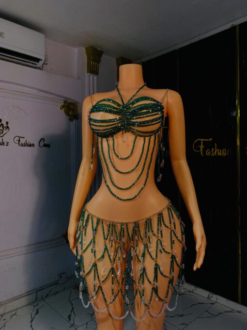 A true show stopper hand beaded green masterpiece. Flatter the body while giving Luxe and chic