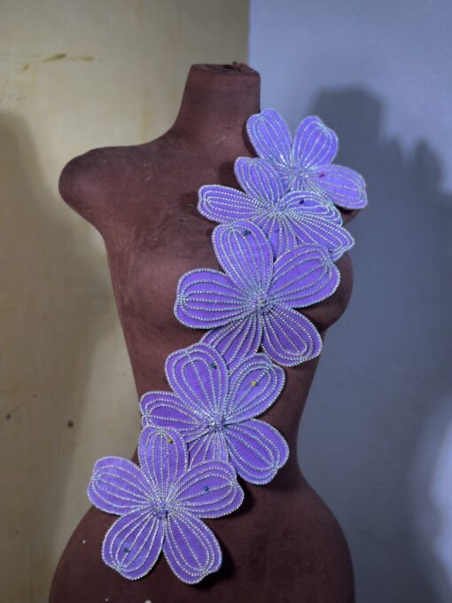 A well detailed 3D Applique with a silver contouring perfect for decorating evening gowns, bridal couture or statement Fashion pieces