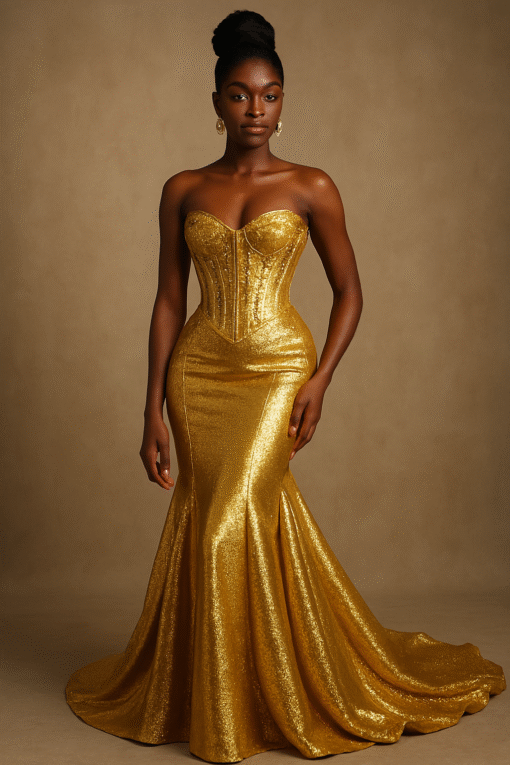 Ethereal Elegance: luxurious gold floor length dress. Make an unforgettable entrance in this breathtaking prom dress, customizable to your perfect fit .